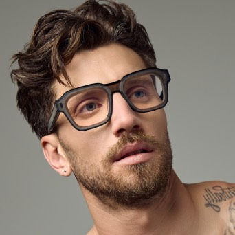 Techniques de production japonaises pointues et façonnage manuel sont nécessaires pour créer l’inclusion d’une silhouette à l’intérieur d’une forme en acétate. Cette fusion parfaite entre deux montures et la juxtaposition contrastée des formes et des couleurs crée une rupture dans le design, pour un résultat à la fois traditionnel et pourtant résolument moderne.